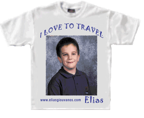 Elias loved to travel. If you are planning a trip and you would like to take Elias along with you, we will offer you a FREE t-shirt. Just give us your name, address and size. We will rush a t-shirt to you in time for your trip. All we ask, when you get to your destination, please take a photo wearing the t-shirt and send it to us. We will post it on this web site and share it with everyone.